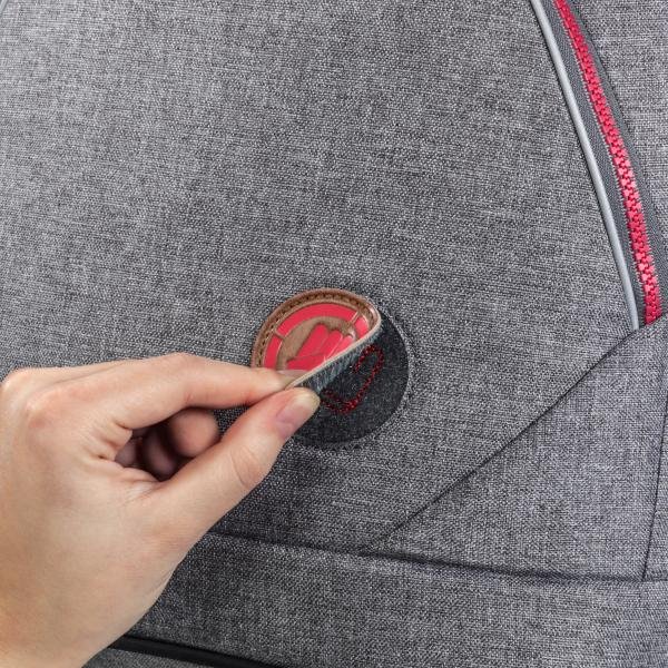 - logo oraz uchwyty do zamków wykonane z ekologicznej skóry