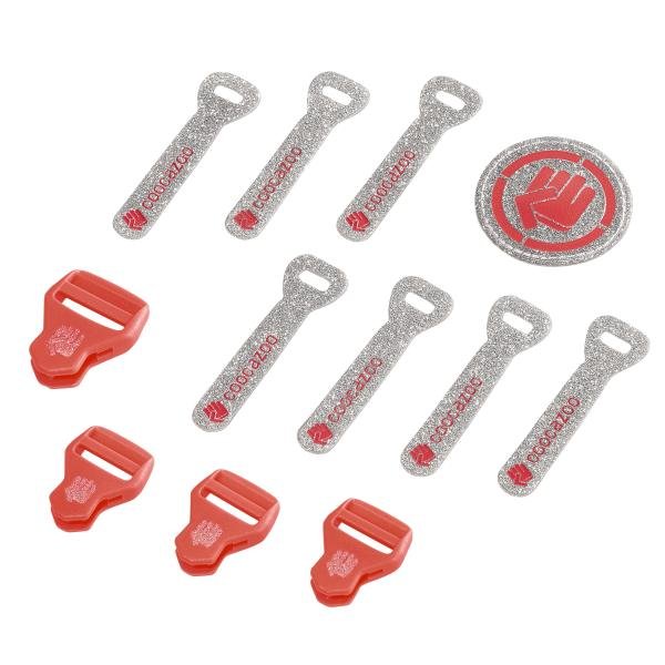 Zestaw elementów wymiennych do plecaków Special, Sprinkled Hibiscus łatwa obsługa: wymiana wszystkich elementów w kilka minut zestaw zawiera: 1 logo, 4 klamry, 7 uchwytów do zamków ...