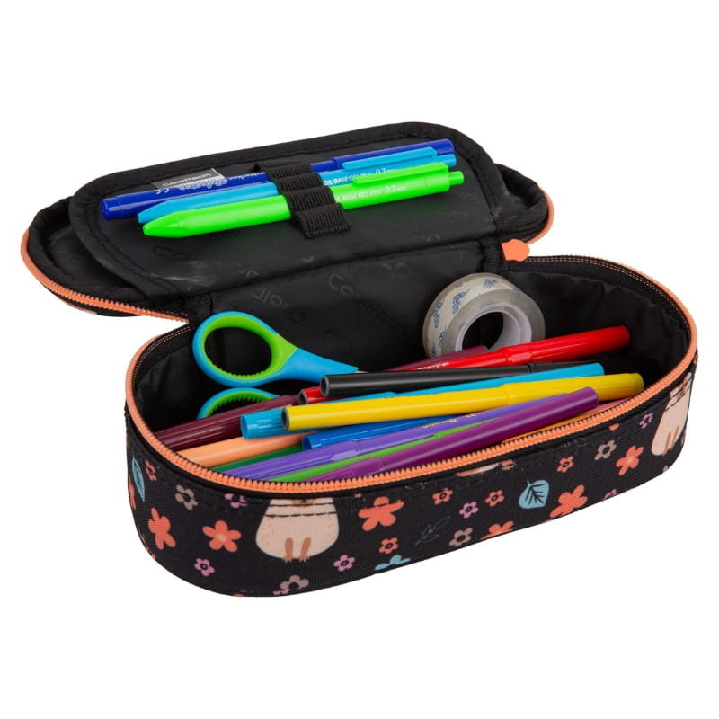 Piórnik CAMPUS posiada jedną dużą komorę główną, w której znajduje się wewnętrzna klapka z organizerem na długopisy, kredki, flamastry.