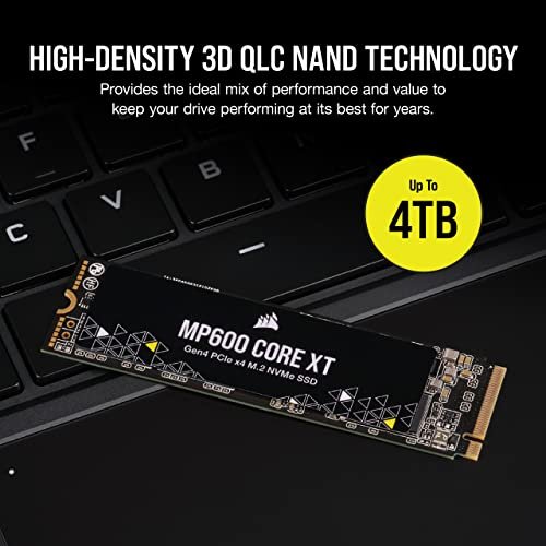Corsair MP600 CORE XT 2 TB M.2 PCIe Gen4 NVMe SSD – Do 5000 MB/s – QLC NAND – M.2 2280 – Do notebooków i komputerów stacjonarnych PCIe 4.0 – Czarny