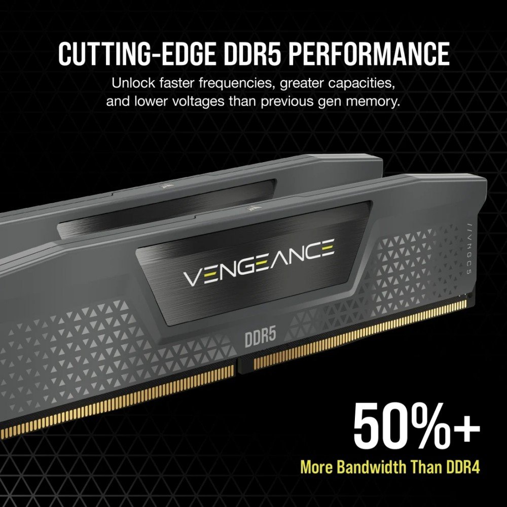 Pamięć DDR5 Vengeance 32GB/6400 (2*16GB) CL32 AMD EXPO & Intel XMP Oferuje większe częstotliwości i pojemności związane z technologią DDR5 w module o wysokiej jakości i kompaktowych rozmiarach, który