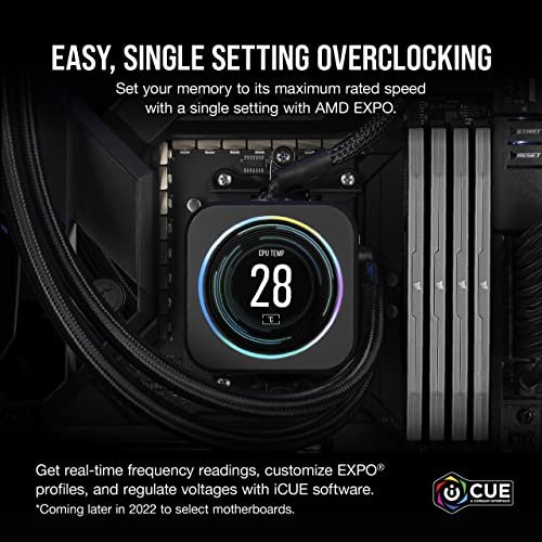Niestandardowe profile AMD EXPO: Dostosuj i zapisuj własne profile AMD EXPO za pośrednictwem iCUE, aby dostosować wydajność do aplikacji lub zadania w celu uzyskania większej wydajności (dostępne później).