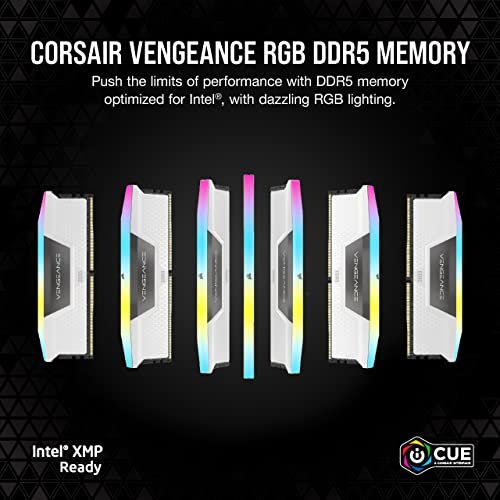 CORSAIR VENGEANCE RGB DDR5 RAM 32 GB (2x16 GB) 5200 MHz CL40 Intel XMP iCUE Kompatybilna pamięć komputerowa — biała (CMH32GX5M2B5200C40W) Dynamiczne dziesięciostrefowe oświetlenie RGB: Oświetl swój ...
