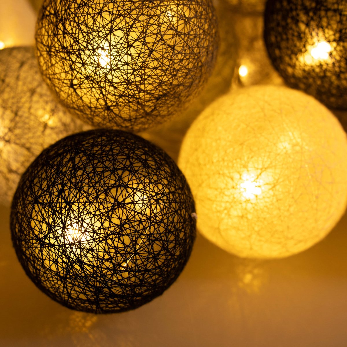| Nazwa: | Cotton balls 20 led lampki dekoracyjne, girlanda na prąd 6cm czarno-szaro-białe |
