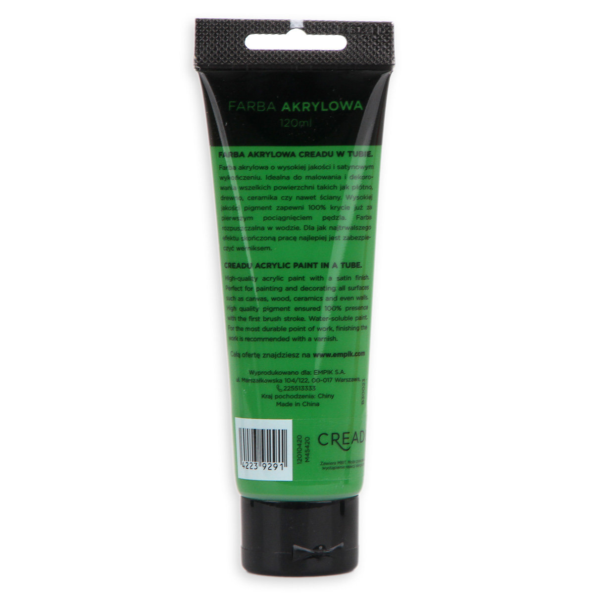 CREADU, Farba akrylowa, zielona, 120 mlCREADU, Farba akrylowa, zielona, 120 ml farba akrylowa ilość sztuk: 1 kolor: zielony pojemność tubki: 120 ml najlepszej jakości pigment m ...