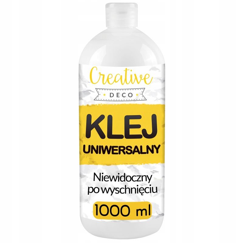 Klej w płynie uniwersalny 1000mlPojemność: 1000mlKolor: biały, wysycha bezbarwnieDo uniwersalnych, rzemieślniczych zastosowańUNIWERSALNY - Chcesz sklejać różne materiały, ale zwykłe kleje nie ...