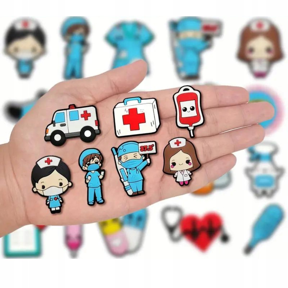 Zestaw zawiera 30 różnych przypinek z motywami medycznymi, takimi jak stetoskopy, serca, plasterki i inne, które dodadzą Twoim butom Crocs niepowtarzalnego charakteru i wyrazistości.