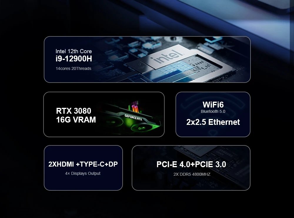Dzięki potężnemu procesorowi i9 i zaawansowanej karcie graficznej RTX3080 , nasz Mini PC gwarantuje szybkie i płynne działanie. Otwórz drzwi do świata bezproblemowego multi-taskingu, płynnej obsługi grafiki i błyskawicznego uruchamiania aplikacji.