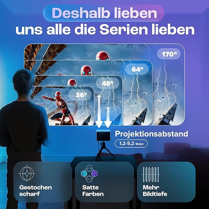 Idealny do oglądania filmów, seriali, grania w gry czy prezentacji multimedialnych w domu, biurze czy na imprezie.
