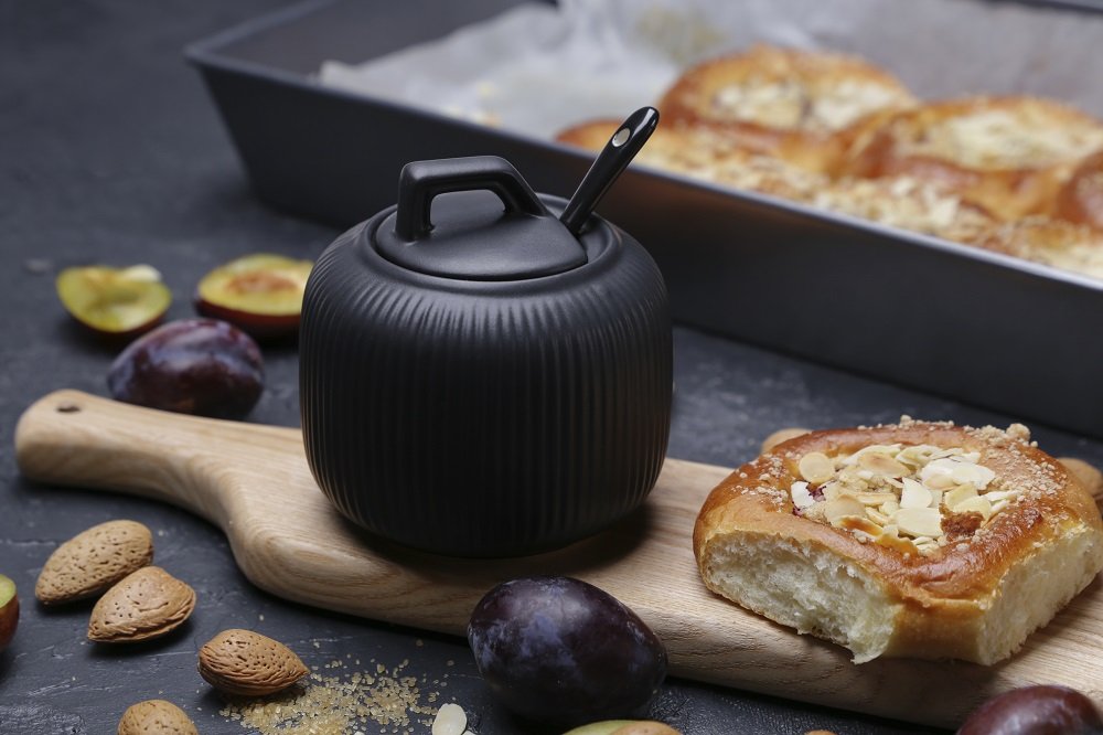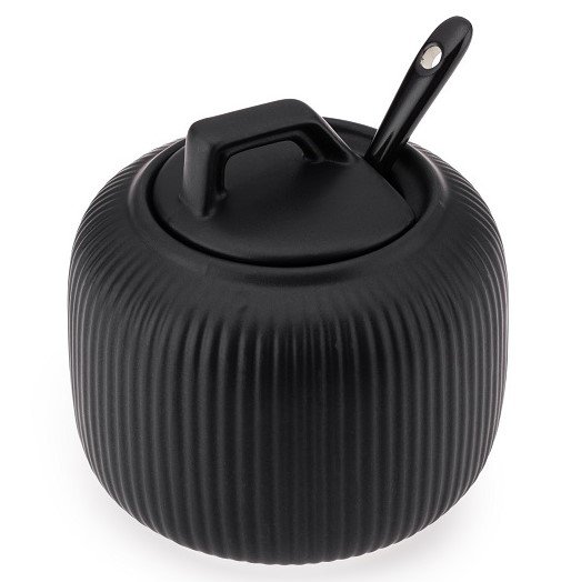 Ceramika w kuchni to klasyczne i ponadczasowe rozwiązanie, które uzupełni również nowoczesne wnętrza. Linia akcesoriów kuchennych OSBORN zachwyci zarówno miłośnika elegancji, jak również nieszablonowego minimalistę. Prezentowana cukiernica OSBORN składa się z pojemnika na cukier oraz pokrywki z wygodnym, poręcznym uchwytem w czarnym kolorze. Uzupełnia je smukła łyżeczka w tej samej kolorystyce. Całość wykonana z ceramiki nadaje naczyniu elegancji, a okrągły kształt dopełnia przytulne wnętrza. Cukiernica OSBORN to klasyczny i ponadczasowy umilacz codziennie wypijanych kaw oraz herbat.