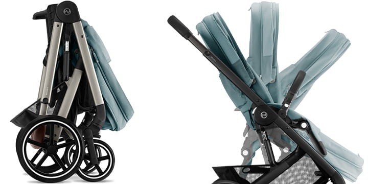 Wózek Cybex Balios S Lux 2.0 osiąga wymiary kompaktowego , łatwego w transporcie wózka. Stelaż składa się razem z siedziskiem spacerowym co znacznie wpływa na komfort użytkowania.
