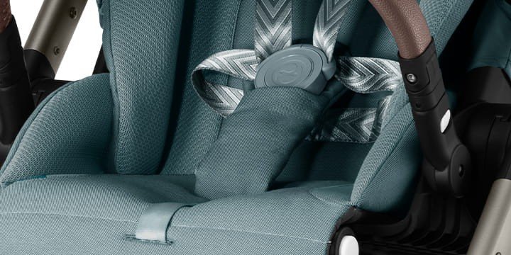 Cybex Balios S Lux 2.0 posiada nowy system zapinania pasów. System działa podobnie jak w fotelikach samochodowych, taki sam patent posiada też wózek Priam 4.0 z linii Platinum. Po włożeniu dziecka do spacerówki wystarczy zapiąć pasy i jedną ręką dociągnąć je tak, by maluch nie mógł się wydostać.