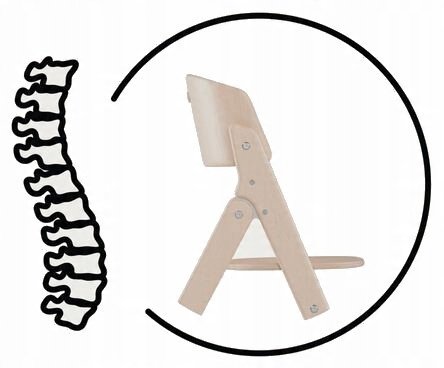 Krzesełko Click & Fold zaprojektowano tak, by wspierało prawidłową postawę. Siedzisko i podnóżek krzesełka ustawione w górnej pozycji są delikatnie nachylone. Sprzyja to ergonomicznej, naturalnej pozycji siedzącej, wspierając kręgosłup od samego początku przez wszystkie fazy wzrostu.