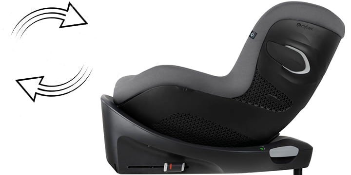 Funkcją, która wyróżnia fotelik Sirona Gi i-Size, jest możliwość pełnego obracania bazy ISOFIX o 360°. Dzięki temu, po zamontowaniu fotelika, można go łatwo ustawić w dowolnym kierunku. Co więcej, ta innowacyjna cecha pozwala na obrót fotelika nawet wtedy, gdy jest pochylony w pozycji leżącej. To zapewnia wysoki komfort zarówno dla rodzica, jak i dla śpiącego malucha, ponieważ nie trzeba ich budzić ani komplikować montażu w wybranej pozycji.