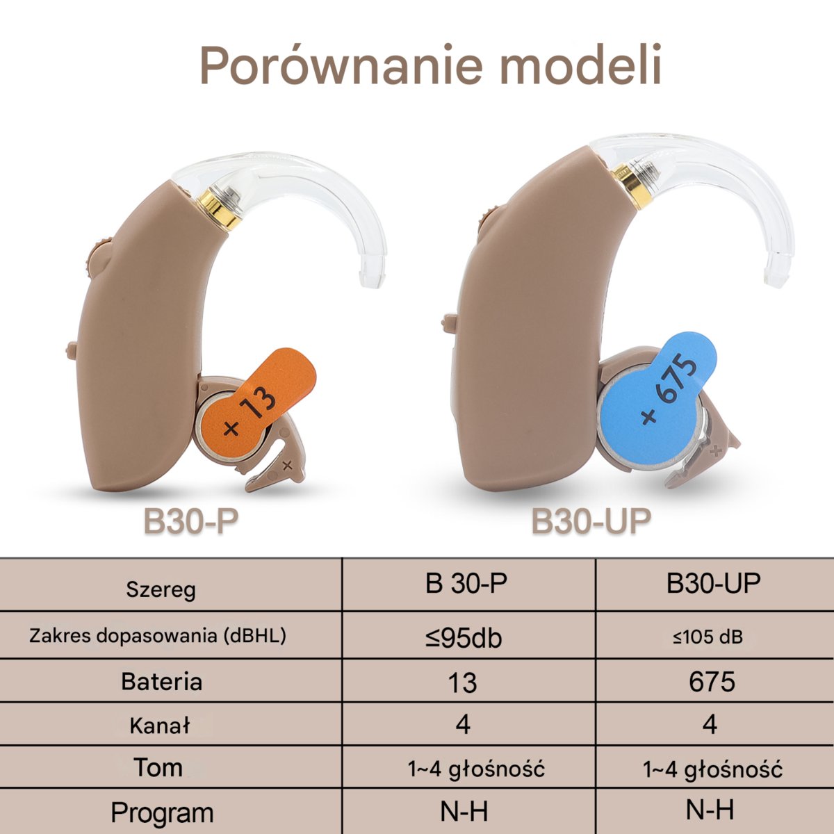 1 × aparat słuchowy B30-P (wersja BTE – zauszna)