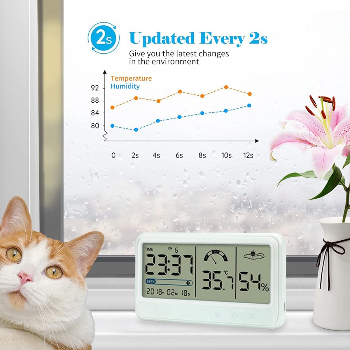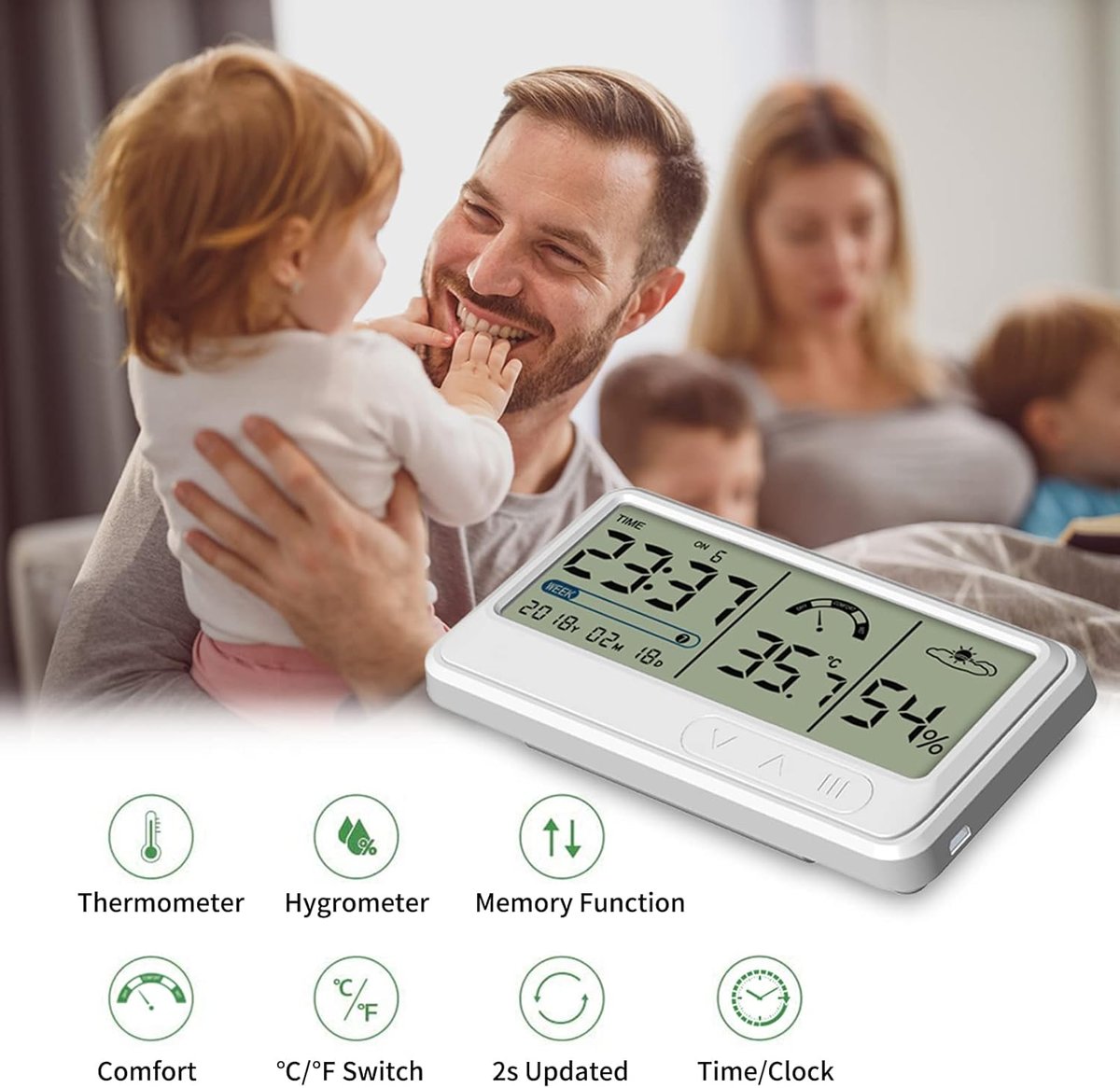 [Dokładność] Cyfrowy higrometr zapewnia aktualne i dokładne odczyty. Dane metryczne są aktualizowane co 2 sekundy, zapewniając najnowsze zmiany w otoczeniu.