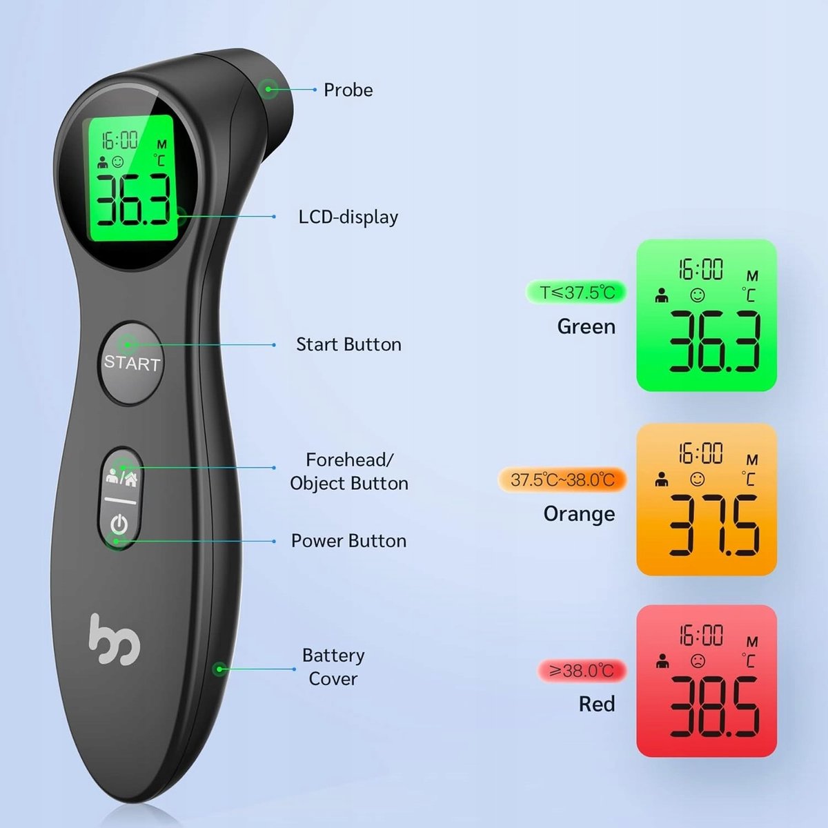 Zadbaj o zdrowie swojej rodziny z bezdotykowym termometrem czołowym Femometr! Ten klinicznie sprawdzony i medycznie certyfikowany termometr na podczerwień zapewnia szybkie i precyzyjne odczyty temperatury w zaledwie 1 sekundę. To wszechstronne urządzenie 3 w 1 mierzy temperaturę ciała z czoła, ale także temperaturę przedmiotów (np. mleka) i pomieszczeń. Dzięki dużemu, cyfrowemu wyświetlaczowi LCD z trójkolorowym podświetleniem (zielony/żółty/czerwony) i alarmowi gorączki, łatwo zidentyfikujesz podwyższoną temperaturę. Kompaktowy, łatwy w obsłudze i bezpieczny – idealny dla niemowląt, dzieci i dorosłych. Monitoruj zdrowie swojej rodziny z łatwością i precyzją!