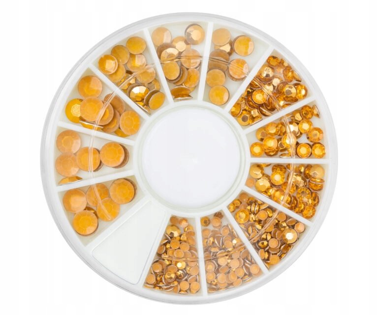 Cyrkonie złote #31 Zestaw ozdób w praktycznym pojemniczku w formie zamykanej karuzeli.Dzięki szczelnemu zamknięciu kryształki nie mieszają się i pozostają w swoich ...