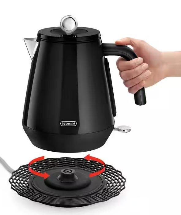 Czajnik bezprzewodowy De Longhi KBY2001. BK Eclettica Bold w kolorze czarnym to stylowy i funkcjonalny sprzęt, który doskonale sprawdzi się w każdej kuchni. Jego nowoczesny design na pewno przyciągnie uwagę i nada eleganckiego wyglądu wnętrzu.