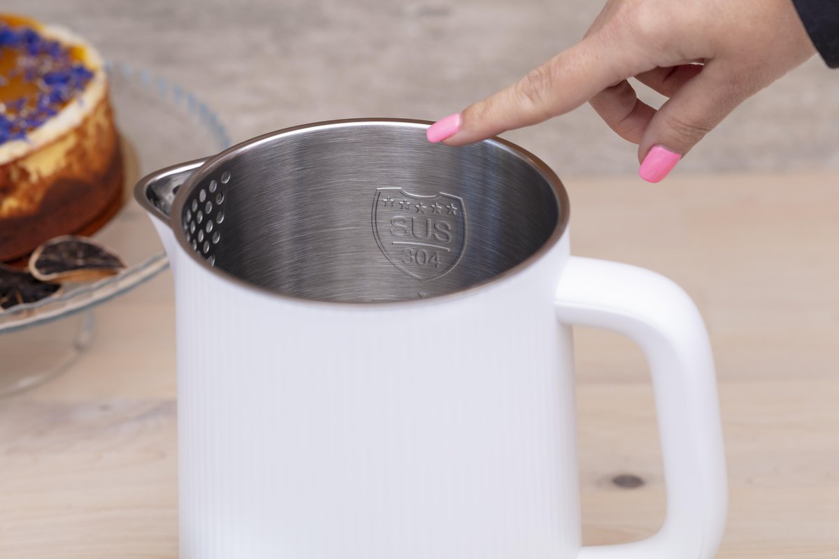 Zewnętrzna powłoka czajnika nie przewodzi ciepła, a więc możesz śmiało chwytać dzbanek bez obawy o poparzenia, co sprawia, że jest on bezpieczny i idealny do codziennego użytku, także dla najmłodszych członków rodziny.