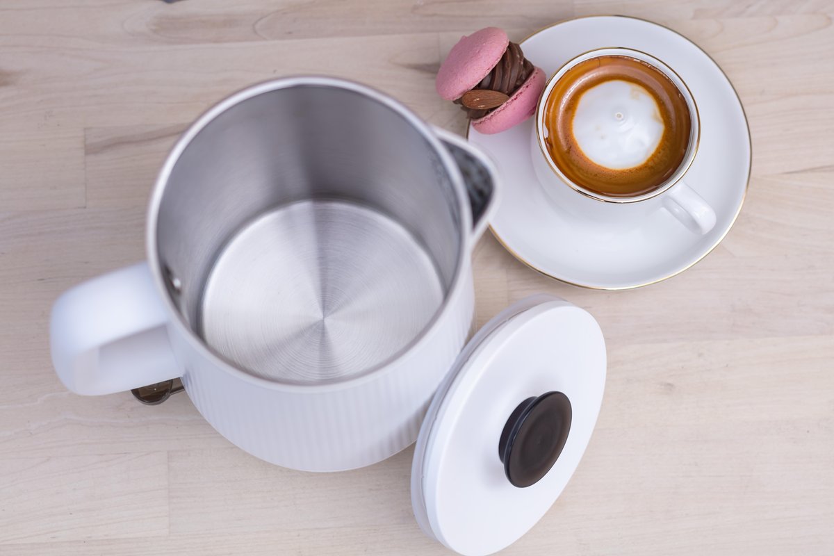 Czajnik dzięki podwójnym ściankom utrzymuje temperaturę wody dłużej niż standardowe czajniki oraz tłumi dźwięk gotującej się wody, gwarantując cichą pracę urządzenia.