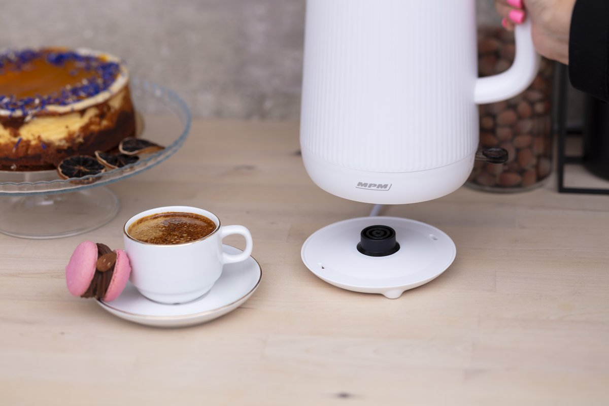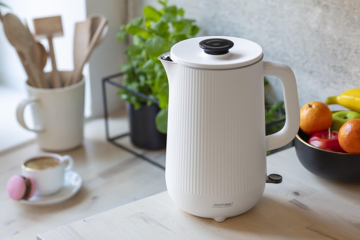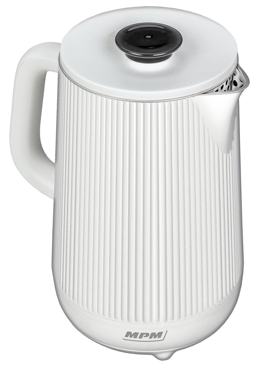 Czajnik bezprzewodowy MPM MCZ-115 w białym kolorze. Dzbanek o podwójnych ściankach. Czajnik dzięki podwójnym ściankom utrzymuje temperaturę wody dłużej niż standardowe czajniki oraz tłumi dźwięk ...