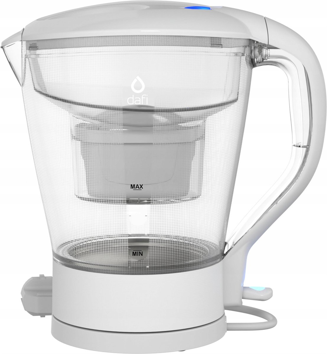 Elektryczny czajnik filtrujący marki DAFI 2w1 z wkładem Unimax to nie tylko wygoda gotowania, ale także dbałość o smak i czystość wody, dzięki filtrowi Unimax. Redukuje twardość wody, metale ciężkie, chlor i inne substancje wpływające negatywnie na smak i zapach. Inteligentny wskaźnik SMART LED informuje o konieczności wymiany filtra, a transparentny zbiornik z tritanu ułatwia kontrolowanie ilości wody. To materiał nie tylko estetyczny, przypominający szkło, ale także lekki, nieabsorbujący zapachów i całkowicie bezpieczny dla zdrowia, pozbawiony szkodliwego BPA. Dodatkowym udogodnieniem jest obrotowa podstawa antypoślizgowa, umożliwiająca obsługę zarówno dla osób prawo-, jak i leworęcznych. Czajnik jest bezpieczny, wykonany z trwałych materiałów, a płaski element grzejny ze stali szlachetnej zapewnia szybkie gotowanie i łatwe czyszczenie.