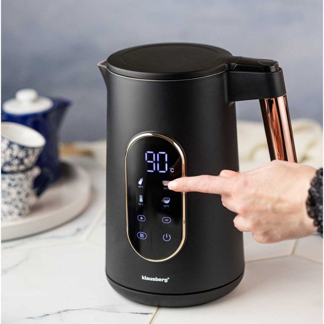 Czajnik elektryczny Klausberg KB-7892 to wyjątkowe połączenie nowoczesnej technologii, precyzji i luksusowego wzornictwa. To nie tylko urządzenie kuchenne – to stylowy element wyposażenia, który zadba o idealną temperaturę wody do Twoich ulubionych napojów, podnosząc komfort codziennych rytuałów.