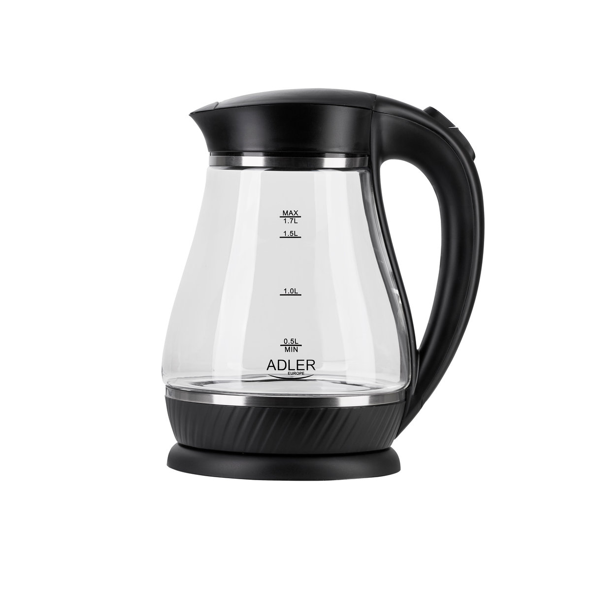 Maksymalna pojemność gotowanej wody to 1,7 l. Czajnik posiada nowoczesne szklane wykończenie, podświetlane podczas gotowania. Idealnie wpasuje się w nowoczesne wnętrza. Połączenie transparentnego szkła i czerni to kolorystyczny klasyk. Praktyczna miarka pozwoli na wygodne odmierzenie ilości gotowanej wody.