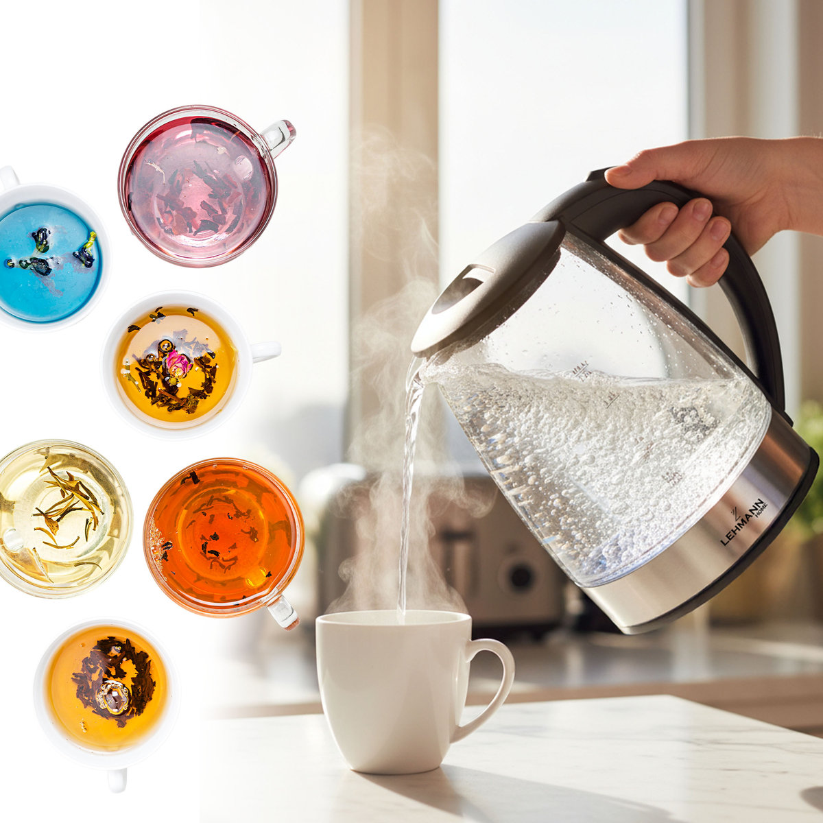 Dlaczego wybierać kompromisy? Czajnik elektryczny Lehmann gwarantuje czystość wnętrza, prostotę obsługi i łatwe odkładanie na obrotą podstawę. Szybko się nagrzewa i utrzymuje temperaturę. To idealny czajnik o mocy aż 1850W-2200W i pojemności 2L, a przy tym niesamowicie piękny i estetyczny w każdej przestrzeni kuchennej.