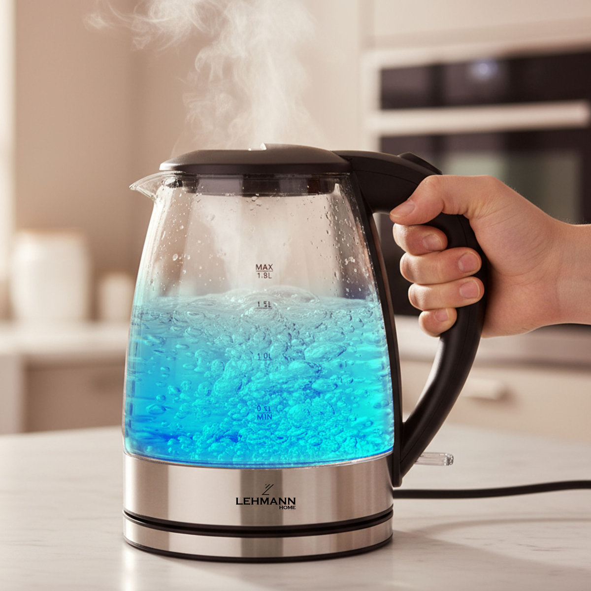 | Nazwa: | Czajnik elektryczny, szklany, bezprzewodowy, LEHMANN, 2200W 2L |