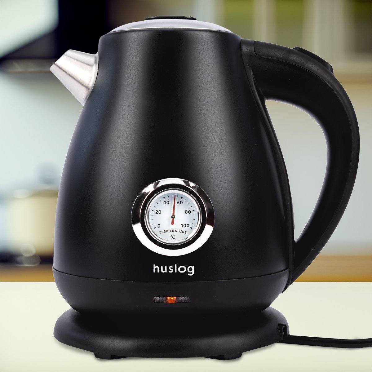Charakterystyczną cechą czajnika jest termometr, który pokazuje narastającą temperaturę podczas gotowania wody. Z czajnikiem Huslog przygotowanie danego napoju z odpowiednią temperaturą jest niezwykle proste i szybkie. Funkcjonalność urządzenia zwiększa również umieszczony pod uchwytem wskaźnik poziomu wody.