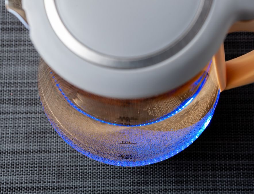 Czajnik elektryczny pozwoli na szybkie zagotowanie wody. szklany, podświetlany zbiornik płyta grzejna obrotowa podstawa potrójny system zabezpieczający wskaźnik poziomu wody odchylana pokrywa