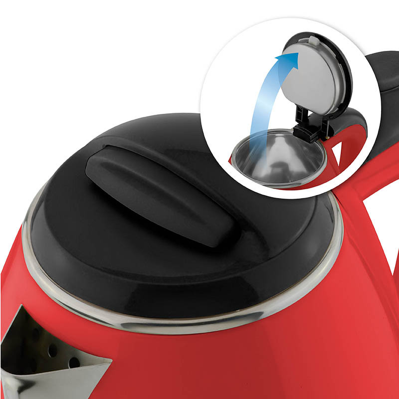 Przycisk do otwierania wieka czajnika znajduje się na samej pokrywie. Naciśnięcie przycisku ułatwia otwarcie pokrywki.