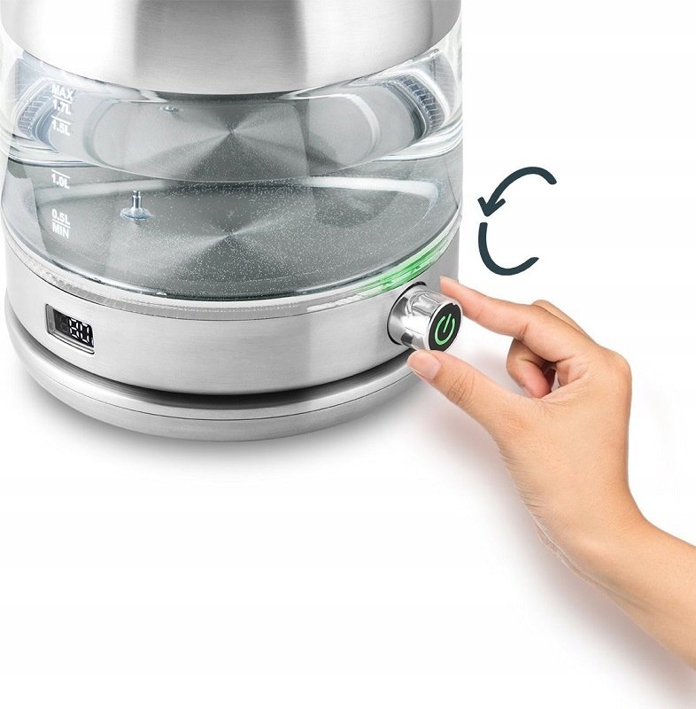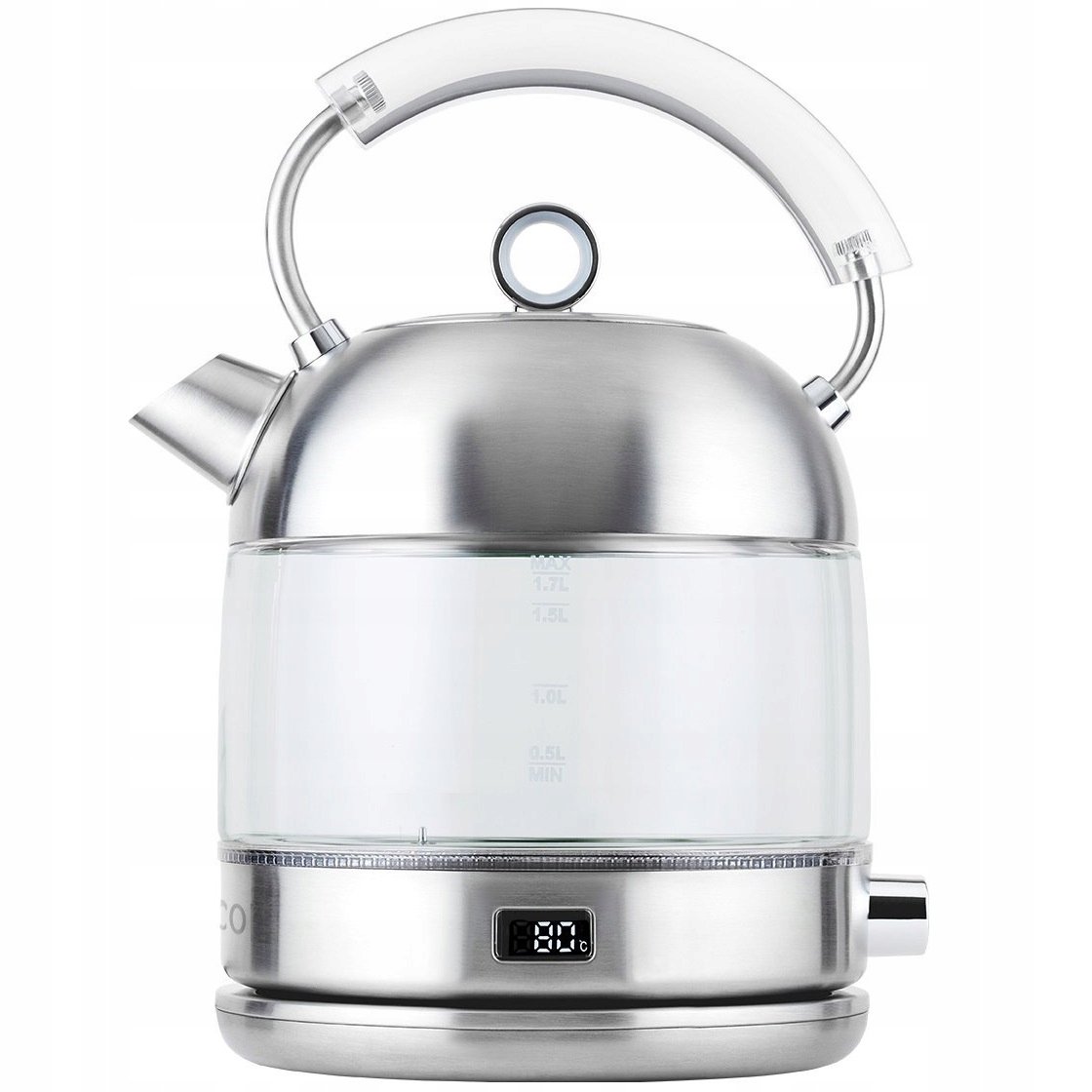 - Elegancki czajnik wykonany ze szkła i stali nierdzewnej