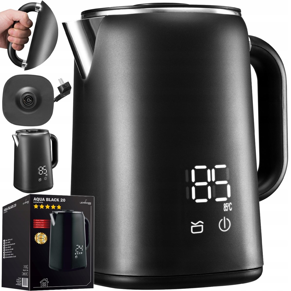 Dlaczego wybierać kompromisy? Czajnik elektryczny Lehmann gwarantuje czystość wnętrza, prostotę obsługi i łatwe odkładanie na obrotą podstawę. Szybko się nagrzewa i utrzymuje temperaturę. To idealny czajnik o mocy aż 1500W i pojemności 1,7L, a przy tym niesamowicie piękny i estetyczny w każdej przestrzeni kuchennej.