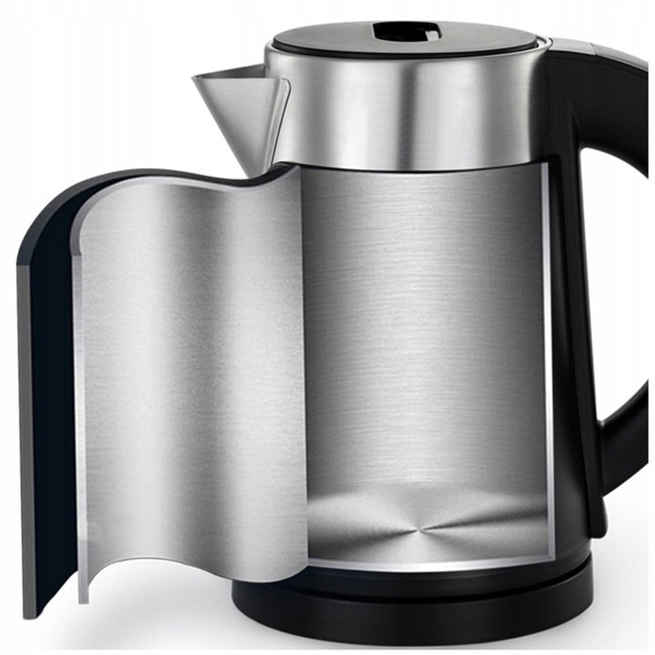 Wnętrze czajnika wykonane zostało ze STALI SS. Jest to dużo lepsze rozwiązanie w porównaniu z tradycyjnymi plastikowymi czajnikami. Nie przedostają się do niego żadne niepożądane związki chemiczne. NIE ZMIENIA ANI SMAKU, ANI ZAPACHU GOTOWANEJ WODY.