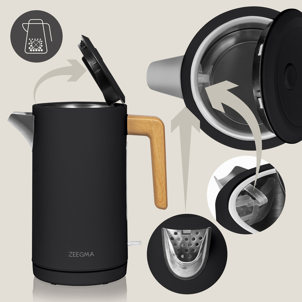 Filiżanka gorącej kawy lub herbaty to idealne rozpoczęcie dnia. Z elektrycznym czajnikiem Ketlee przygotujesz swoje ulubione gorące napoje i desery wymagające zaparzonej wody lub wrzątku. Matowy czajnik z drewnopodobną rączką sprawdza się zarówno w domu, jak i w biurze lub gabinecie. Łatwe użycie, szybkość działania oraz wszechstronność powodują, że Ketlee to urządzenie wspomagające Twoje codzienne rytuały.