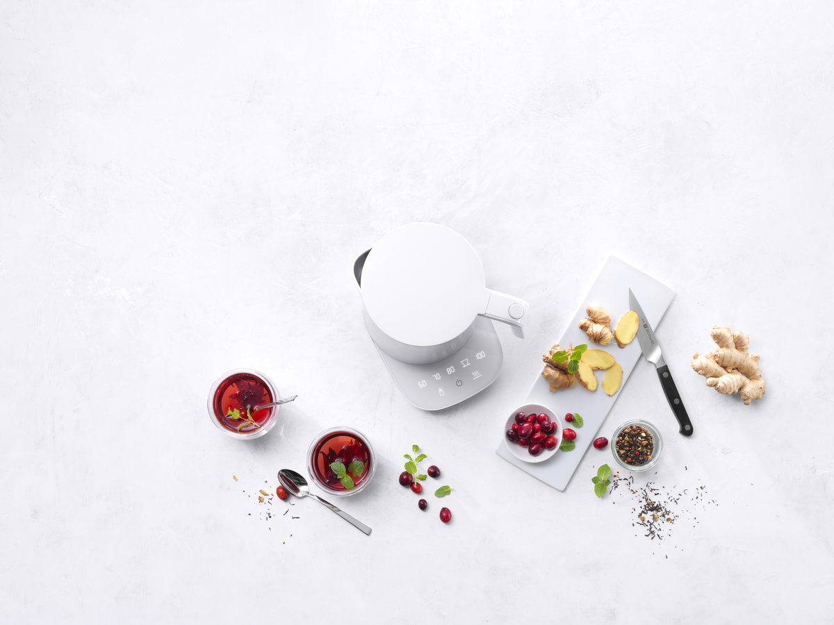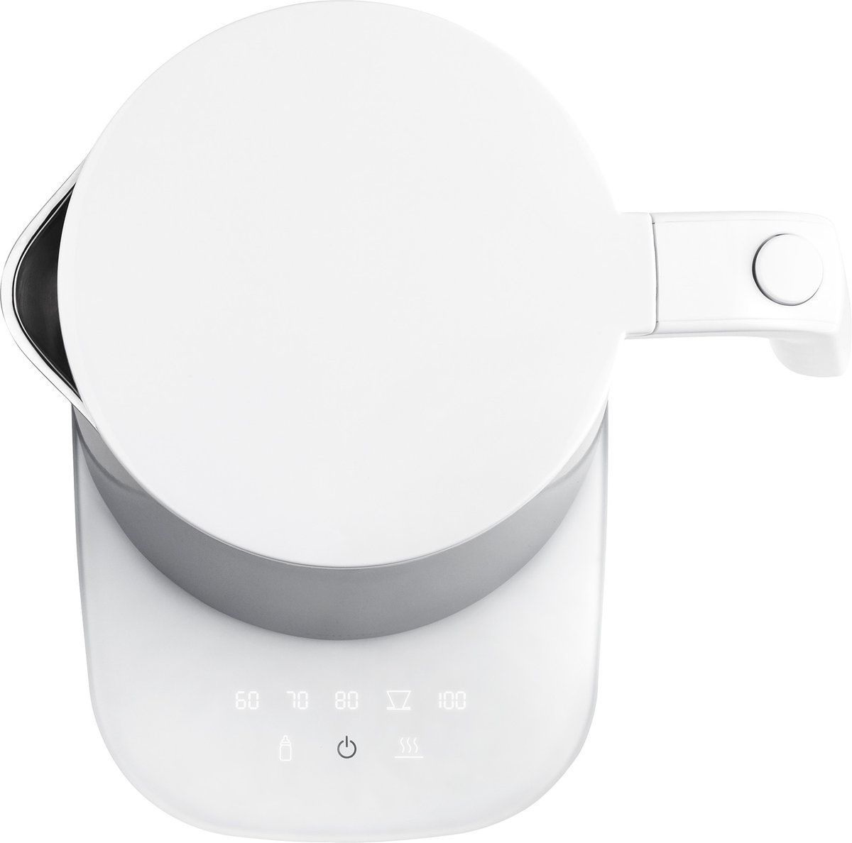 Czajnik z funkcją ustawiania temperatury oferuje 7 różnych programów, które wybrać można za pomocą 360-stopniowej stacji z dotykowym wyświetlaczem. Dzięki temu to 1850-watowe naczynie zawsze osiąga temperaturę idealną do przygotowania kawy, herbaty, a nawet jedzenia dla niemowląt. Dzięki wbudowanej funkcji zachowania ciepła woda utrzymuje pożądaną temperaturę nawet przez 30 minut. Dwuścienna obudowa z izolacją termiczną zatrzymuje ciepło wewnątrz, będąc jednocześnie przyjemnie chłodną na zewnątrz.