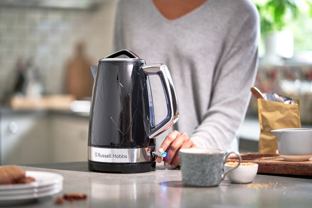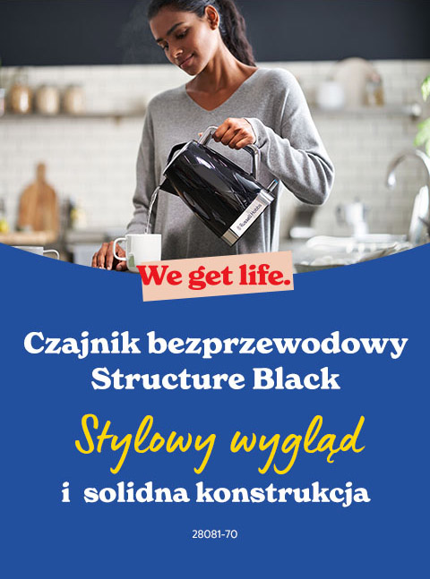 Czajnik bezprzewodowy Structure Black to stylowy wygląd i solidna konstrukcja. Czajnik z teksturowanego tworzywa sztucznego premium w kolorze czarnym ze wstawkami ze stali nierdzewnej będzie ozdobą każdej kuchni.