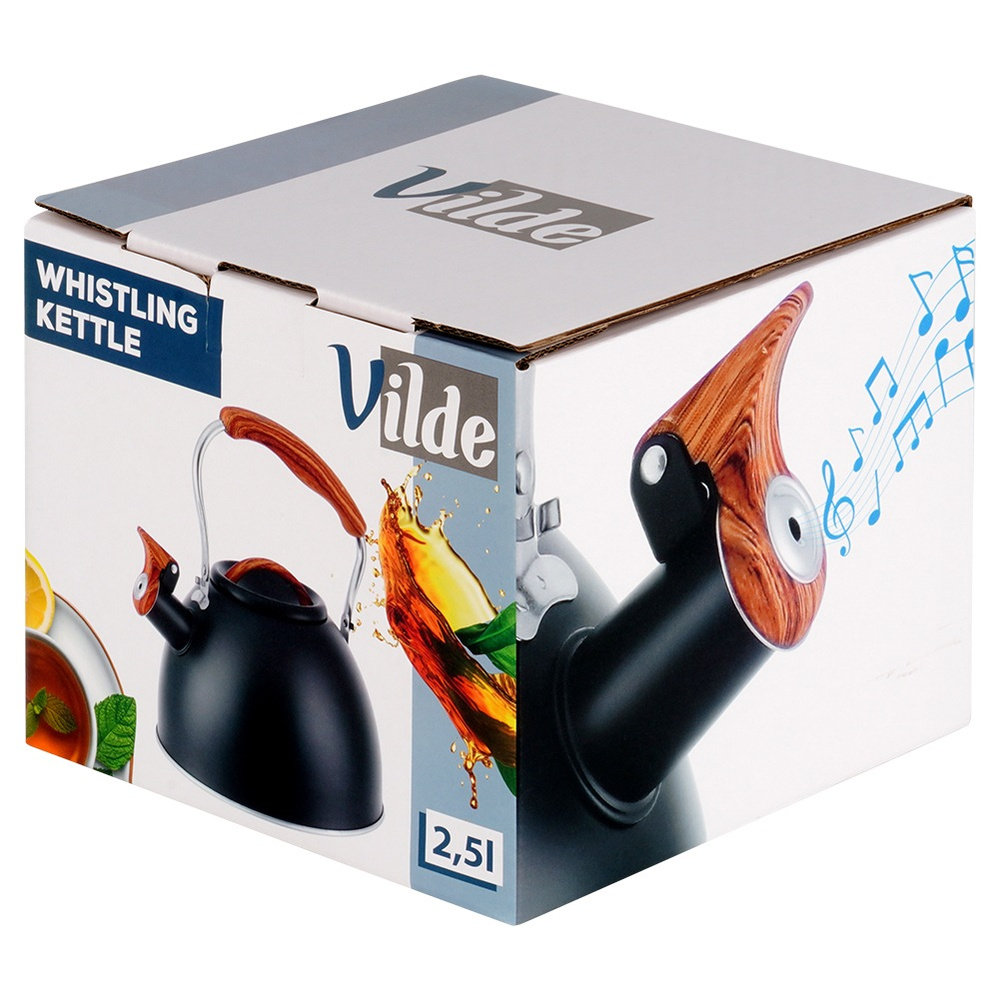 Efektowny czajnik wykonany z najwyższej jakości materiałów. Wykorzystamy go do zagotowania wody na kawę, herbatę czy do zaparzenia ziół. Wygodny w użytkowaniu, dzięki rączce, pokrywce oraz uchylnemu gwizdkowi. Wodę w czajniku zagotujemy bardzo szybko, a czyszczenie go jest bardzo wygodne. Czajnik jest świetnym pomysłem na prezent. ❗️UWAGA! Czajnik do gotowania musi być napełniony co najmniej do połowy aby zapobiec przegrzaniu. Zmiany koloru na powierzchni zewnętrznej w przypadku nieprzestrzegania minimalnych parametrów użytkowych nie mogą być powodem do reklamacji. Oryginalny produkt marki Vilde. Wyprodukowano zgodnie z europejskimi standardami.