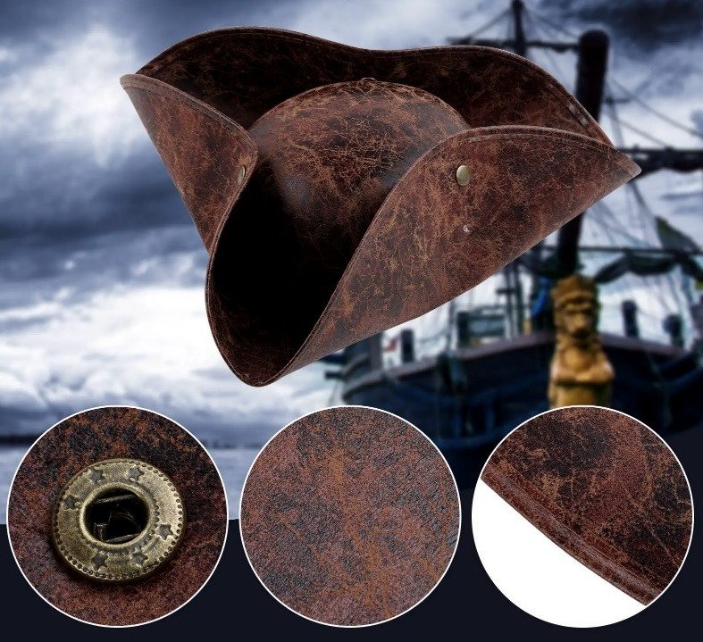 ⭐Kapelusz trikorn na kształt trójkąta, z rondem podwijanym do góry, zapinany na trzy guziki, będzie świetnym elementem stroju postrachu mórz i oceanów.