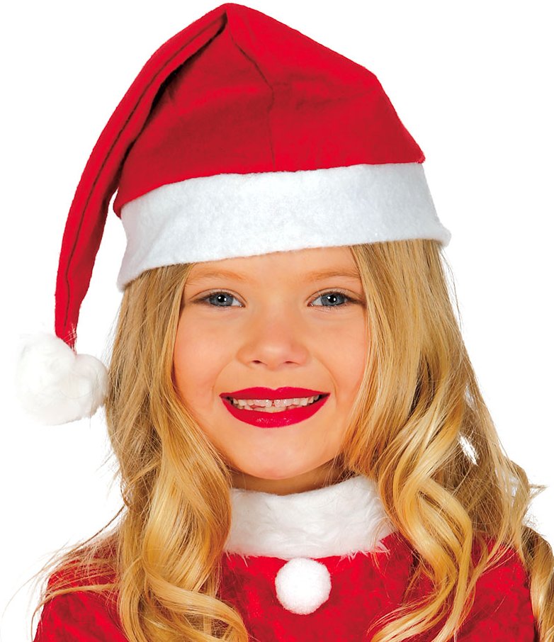 Czapka Mikołaja, dziecięca czerwono-biała czapka z pomponem wykonana z miłego w dotyku materiału rozmiar: dziecięcy