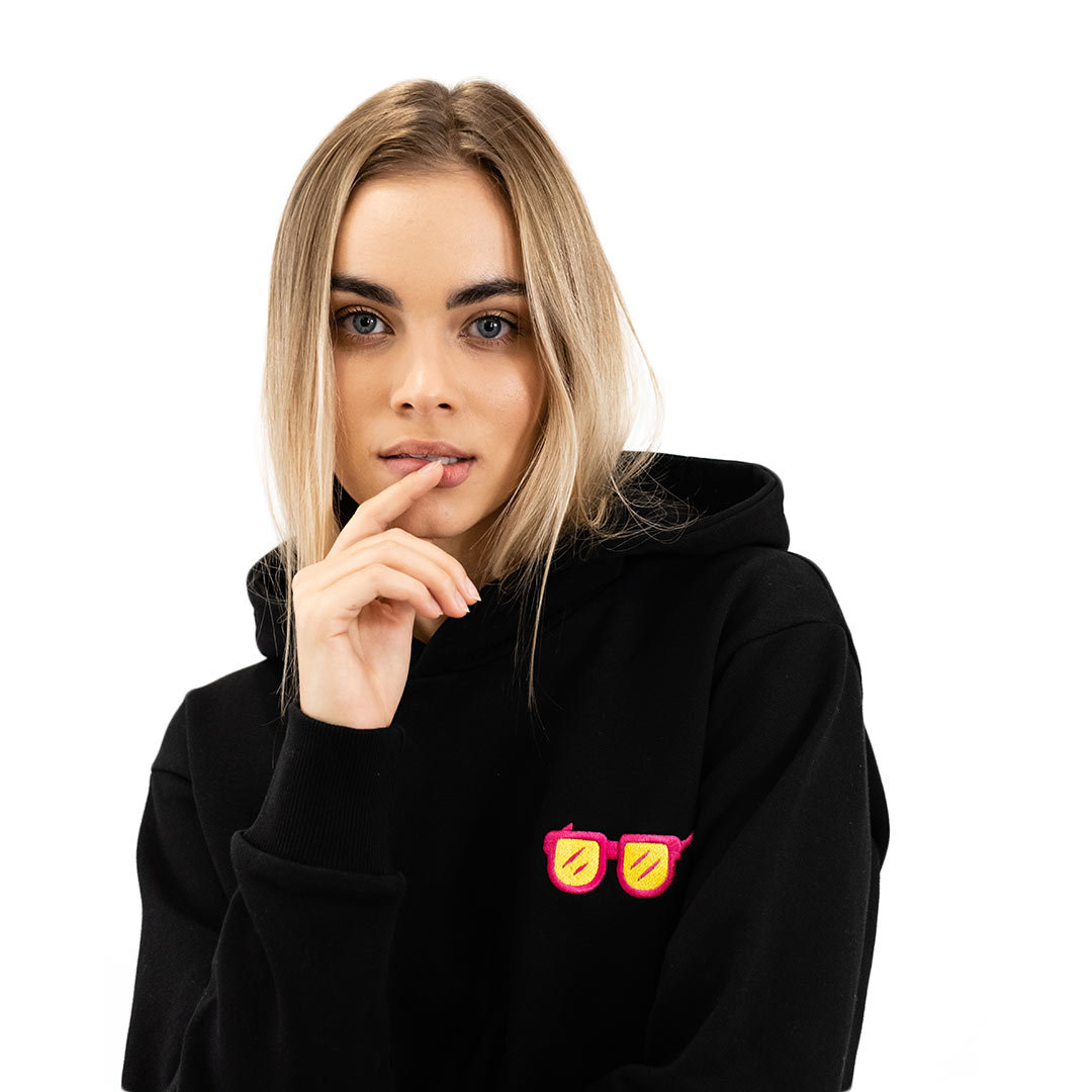 Czarna Bluza Oversized z Modnym Motywem Okularów, Stylowa i Wygodna, XS