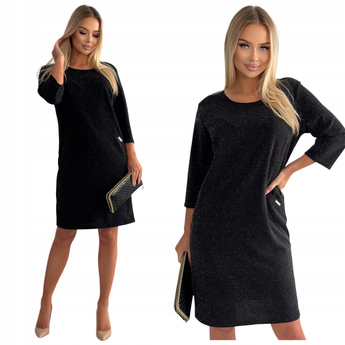 CZARNA KLASYCZNA PROSTA ŚWIECĄCA SUKIENKA ROZMIAR XL