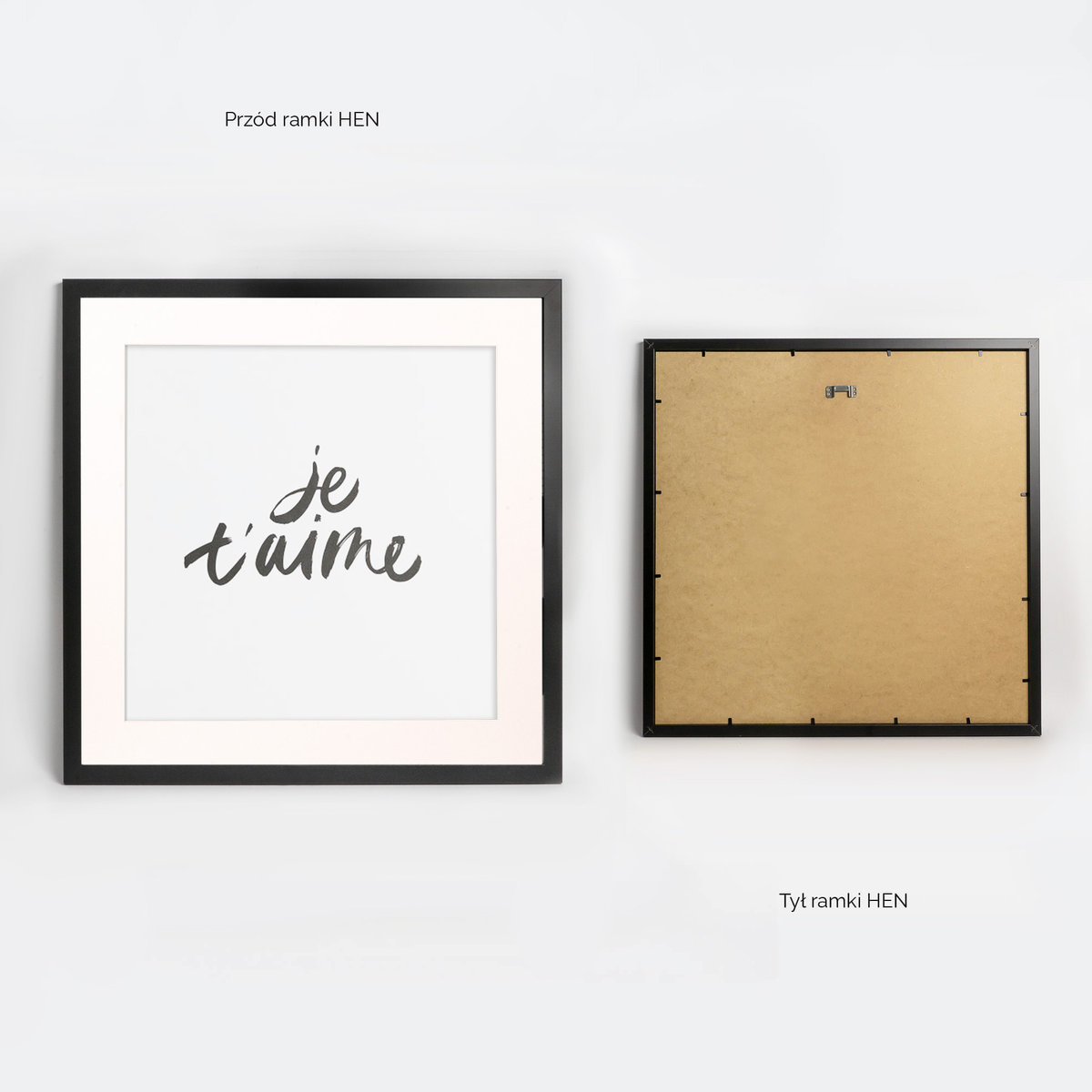 Elegancka czarna ramka na zdjęcia HEN PASS 2 o wymiarach 50x50 cm z passe-partout to doskonałe rozwiązanie dla wszystkich miłośników estetyki oraz wysokiej jakości wykończeń. Wykonana z ekologicznego MDF, ramka łączy nowoczesny design z dbałością o środowisko. Zintegrowane passe-partout z okienkiem o wymiarach 40x40 cm podkreśla walory prezentowanych zdjęć, plakatów czy grafik, nadając im wyjątkowego charakteru.