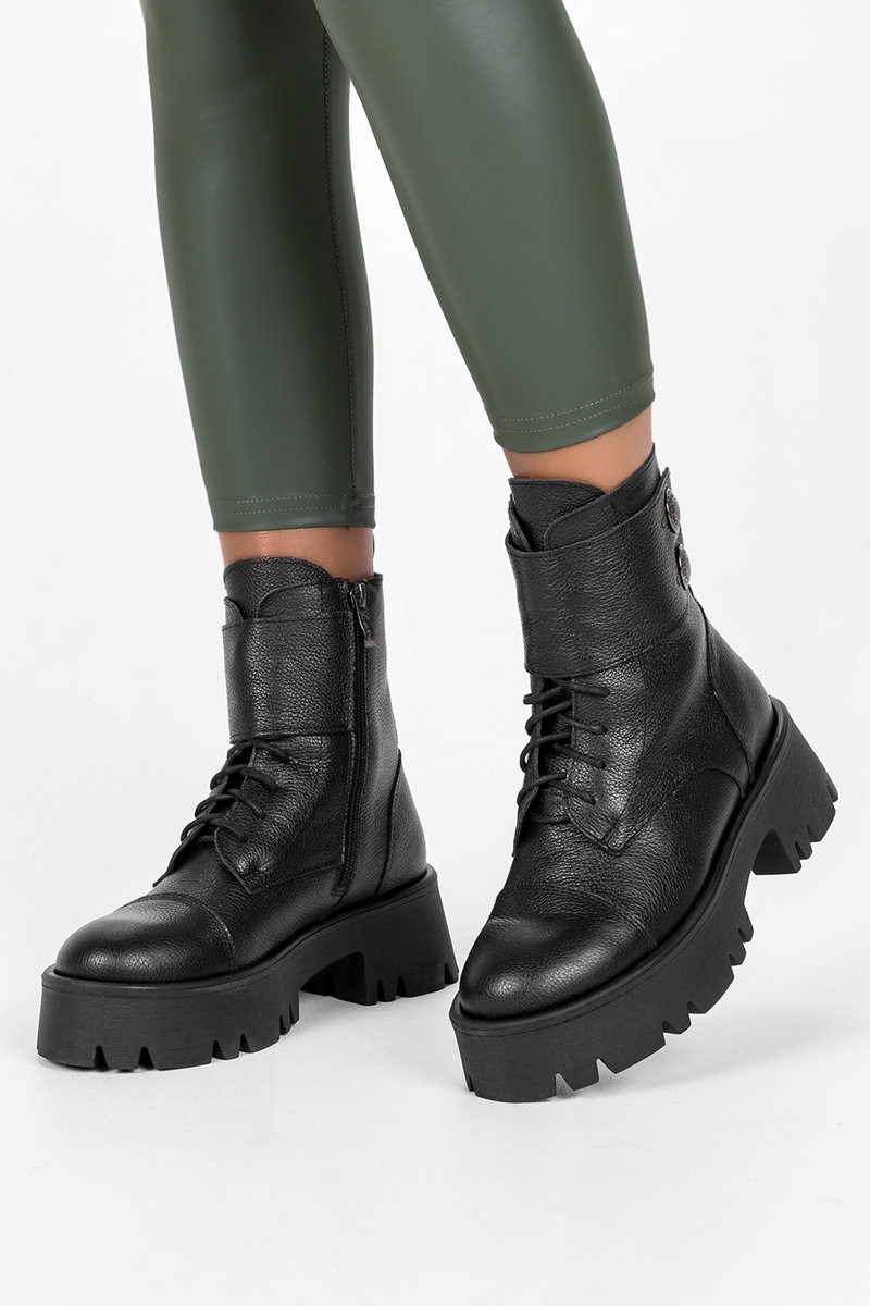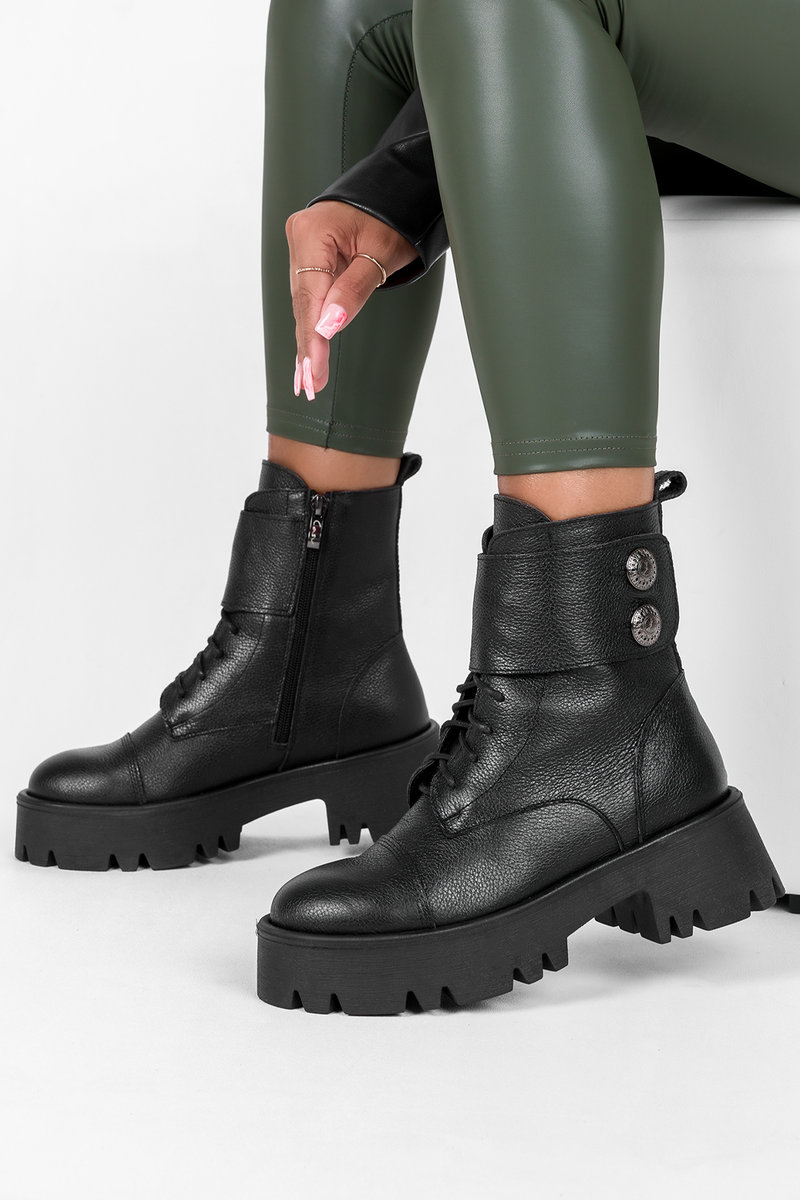 Właśnie zrecenzowałem Czarne botki skórzane na platformie damskie trapery sznurowane z ozdobnym pasem PRODUKT POLSKI Casu 60454-38