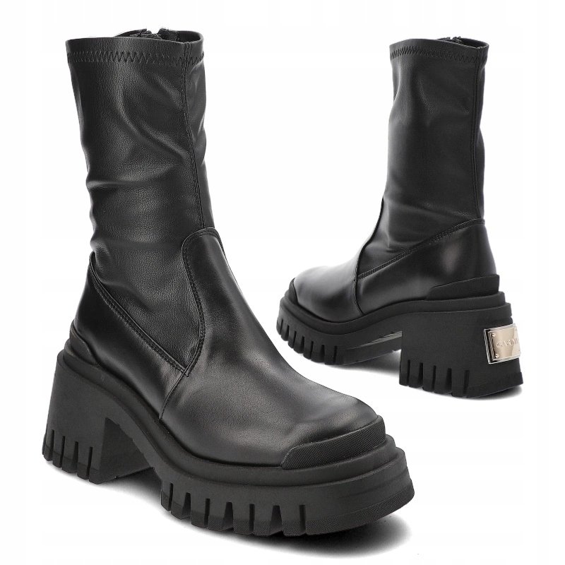 Nazwa: Czarne Botki Workery Carinii B10021 Klocek Platforma Skóra Modne