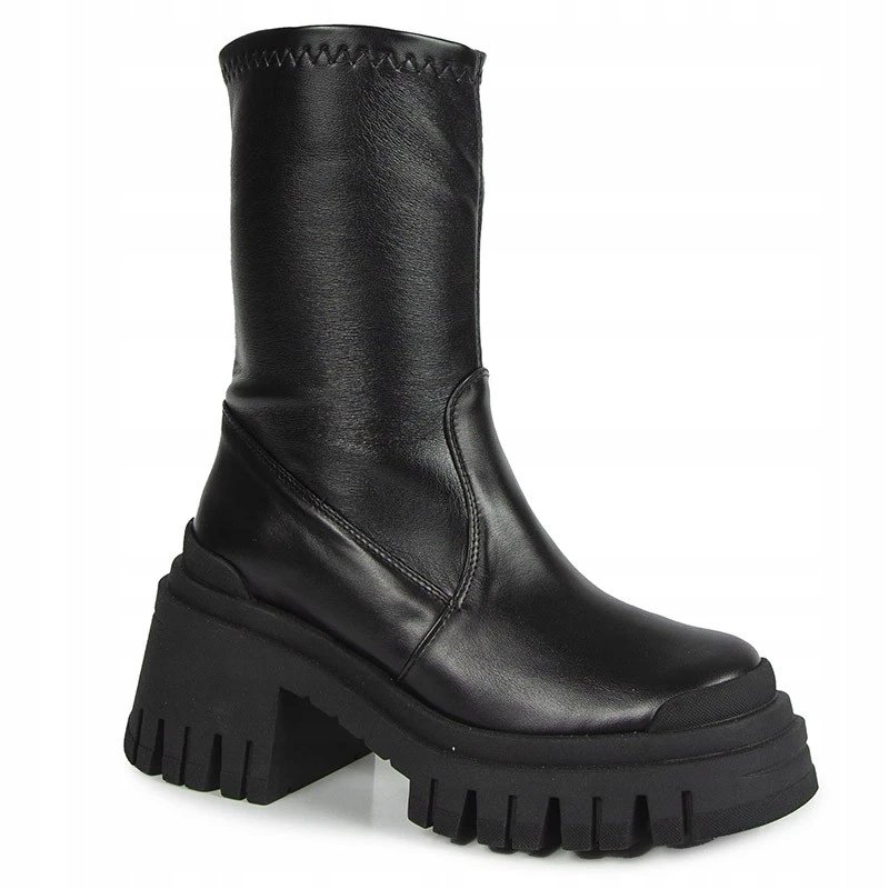 Czarne botki workery CARINII B10021 klocek platforma skóra modne