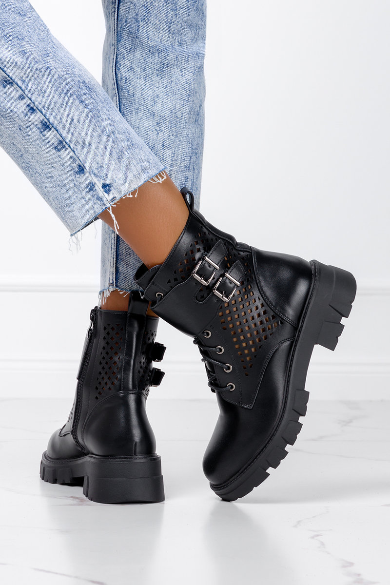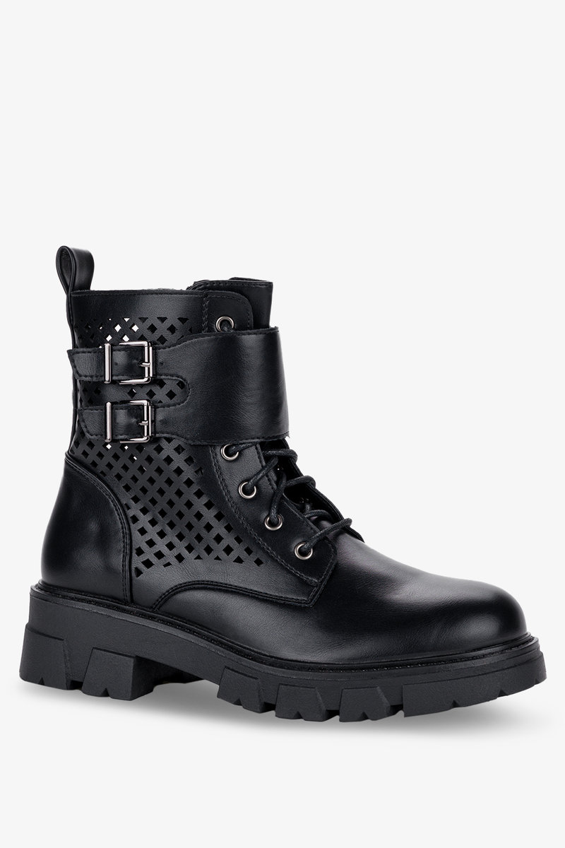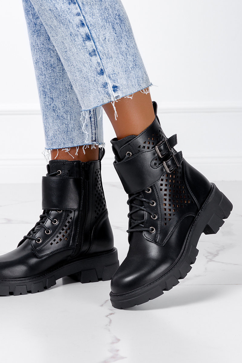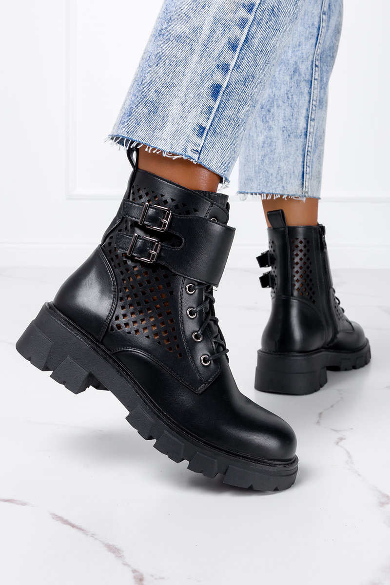 Właśnie zrecenzowałem Czarne botki workery damskie ażurowe z klamrami na platformie sznurowane Casu G22X5-B-39